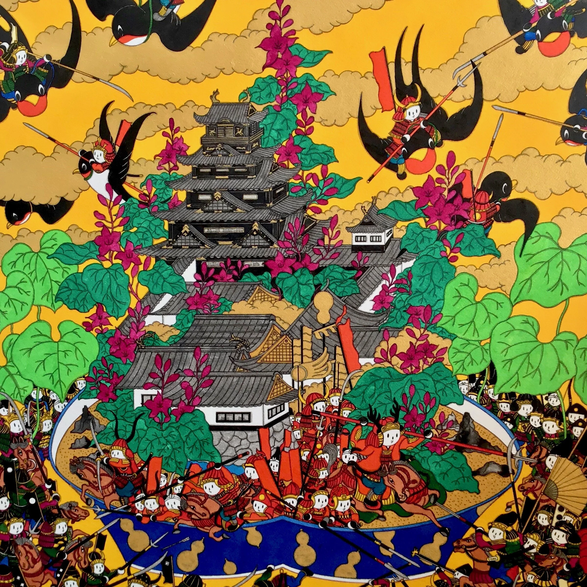 ’ 時の盆栽「大坂夏の陣の桐」’ 木製パネルに水彩紙、ボールペン、アクリル 530x530mm 2019