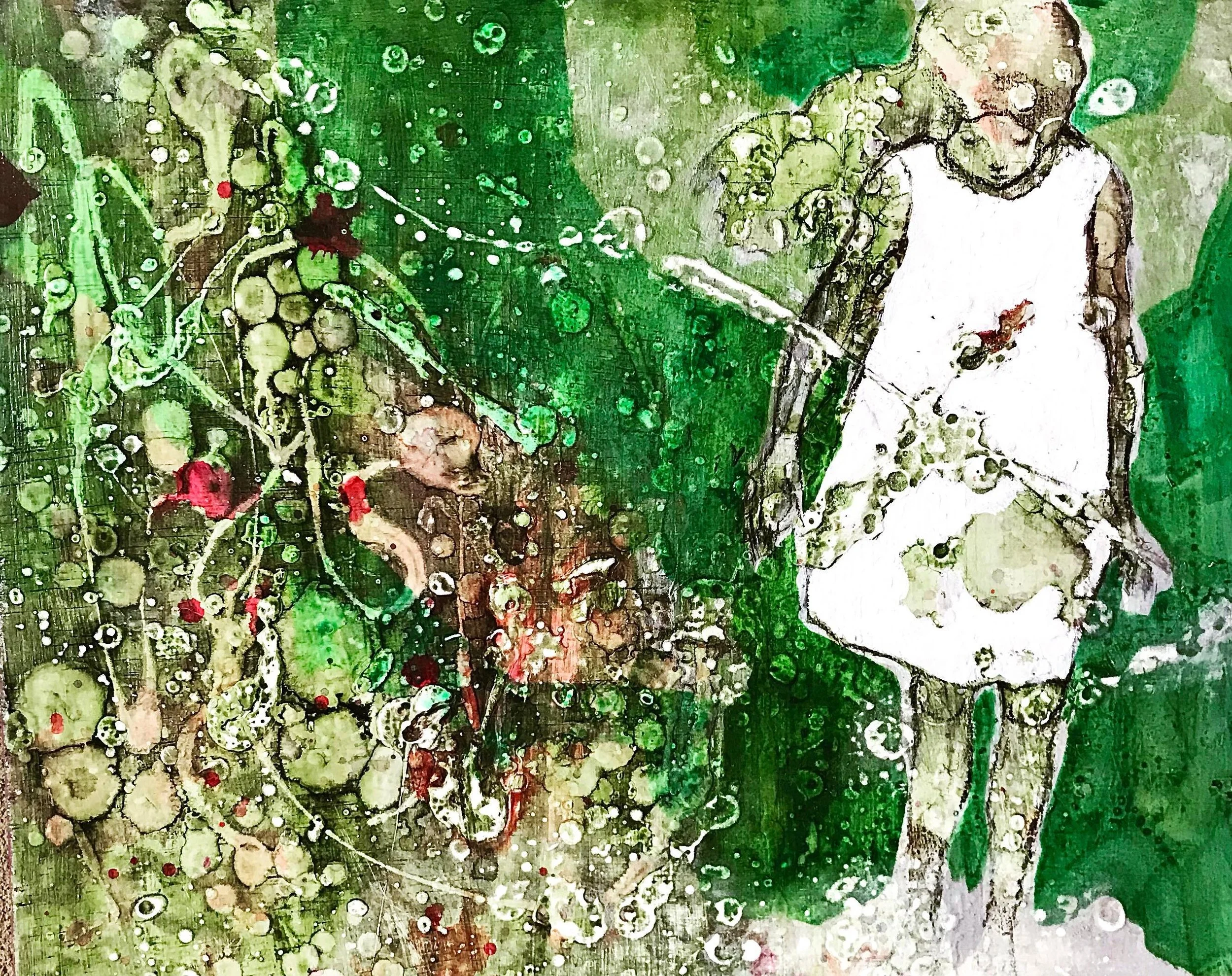 “足もと“ acrylic on panel 22×27.3cm 2022